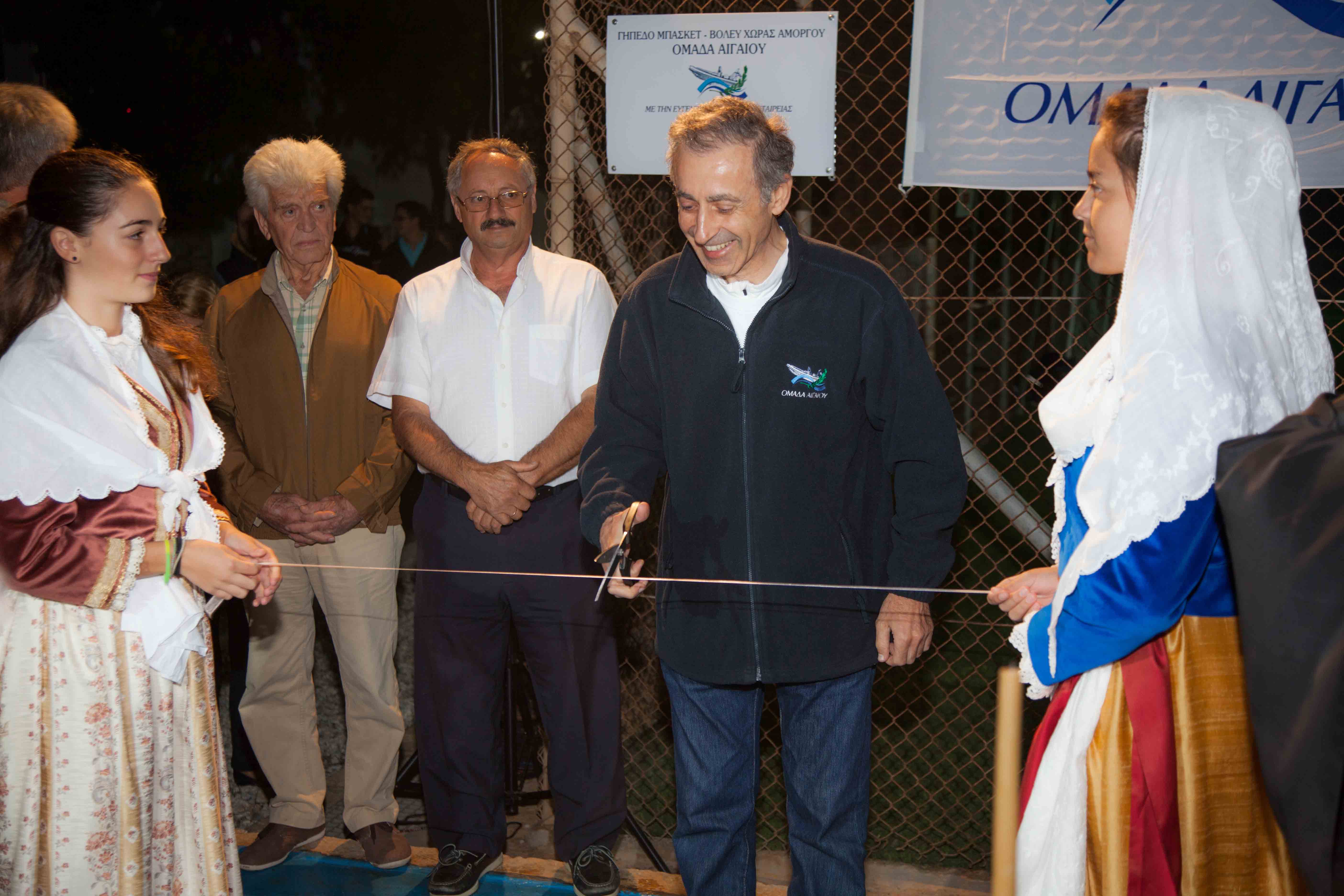 Εγκαινιάστηκε εχθές το βράδυ στην Χώρα, στον χώρο δίπλα από το Γυμνάσιο – Λύκειο, το πολυγήπεδο μπάσκετ-βόλεϊ-χάντμπολ, που διαμόρφωσε η Ομάδα Αιγαίου με την ευγενική χορηγία της εταιρίας AIM και το γήπεδο 5×5, ο χλοοτάπητας του οποίου είναι ευγενική προσφορά της Coca-Cola Hellas.