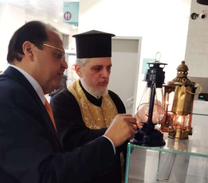 Με ιδιαίτερη τιμή και συγκίνηση, ο Δήμαρχος Αμοργού Ελευθέριος Καραΐσκος παρέλαβε απο το αεροδρόμιο της Σαντορίνης και συνόδευσε το Άγιο Φως στο νησί μας.