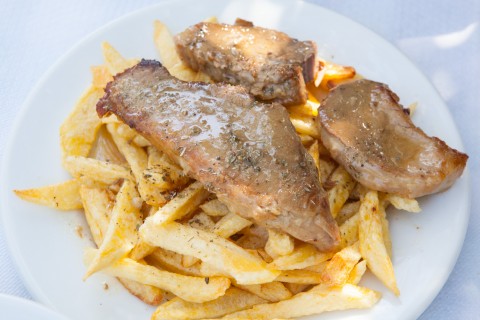 Το φαγητό ήρθε επίσης γρήγορα.Μοσχάρι κοκκινιστό και χοιρινό λεμονάτο.Το κρέας και στις 2 περιπτώσεις μοσχομύριζε και έλιωνε στο στόμα σου.Ενημρωθήκαμε φυσικά ότι όλα τα κρέατα και τα λαχανικά ειναι δικά τους.Το συνοδευτικό ήταν πατάτες τηγανιτές,μαμίσιες, καθαρισμένες στο χέρι, από αυτές που επίσης έχεις ξεχάσει.Τουλάχιστόν εμείς που μένουμε στην Αθήνα που λόγω ταχύτητας έχει αλλάξει η γεύση σε όλα.