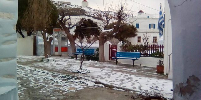 Χιόνισε και στην Αμοργό! Κλειστά τα σχολεία