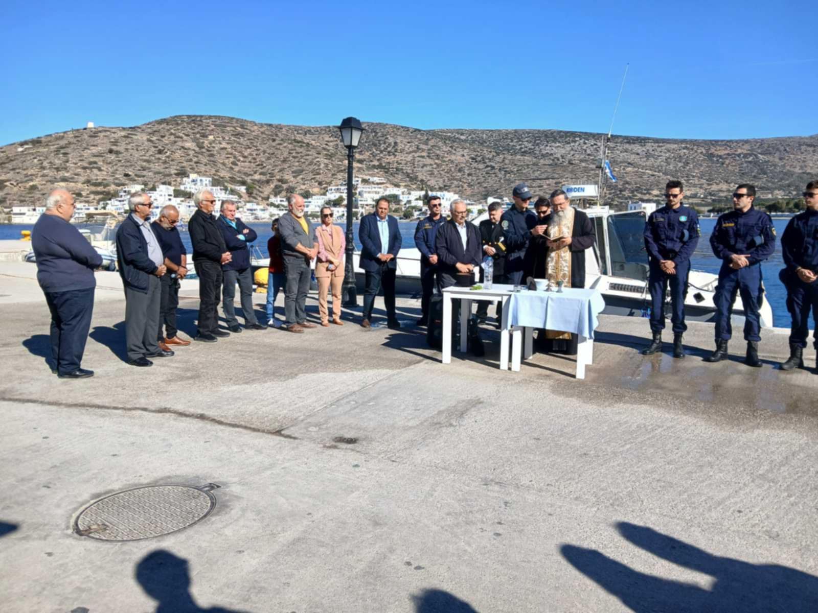 Την Κυριακή 16 Νοεμβρίου, στο λιμένα Καταπόλων, τελέστηκε ο αγιασμός του νέου λιμενικού περιπολικού σκάφους Π.Λ.Σ. 173, σηματοδοτώντας μια σημαντική ενίσχυση για τον Λιμενικό Σταθμό Αμοργού. Η προμήθειά του αποσκοπεί στην αποτελεσματικότερη παρακολούθηση των κανόνων αλιείας στο πλαίσιο εκπόνησης του προγράμματος «Αμοργόραμα».